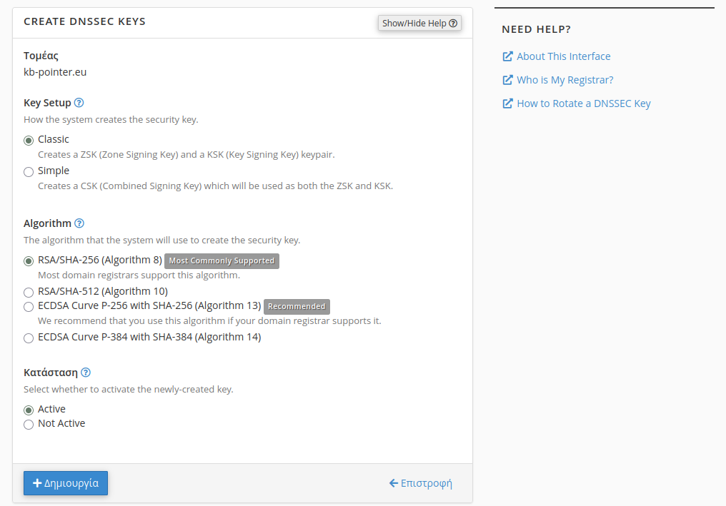 Εγκατάσταση του DNSSEC στο control panel της Pointer